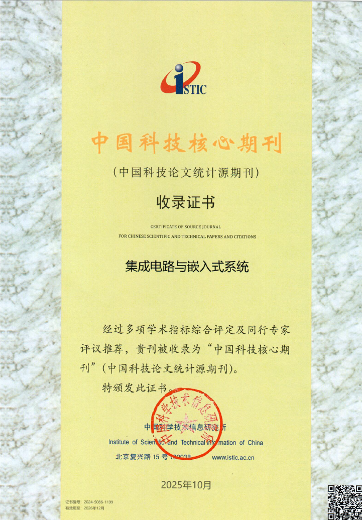 《集成电路与嵌入式系统》主要刊载与集成电路和嵌入式系统相关的综述和学术论文,具体涵盖电路与系统理论及技术、大规模集成电路设计与制造、嵌入式与系统优化、混沌与非线性电路、传感器与物联网、信号与信息处理系统等方面。